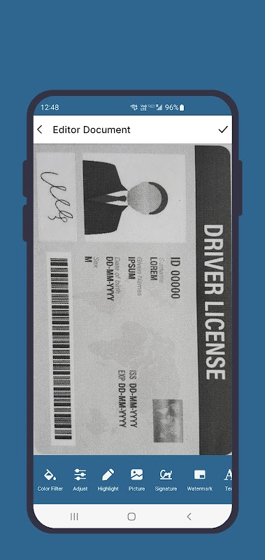 Docs Scanner ایپ کی مدد سے، آپ اپنے فون کو PDF دستاویزات کے لیے پورٹیبل سکینر کے طور پر استعمال کر سکتے ہیں۔ تقریباً کسی بھی چیز کو اسکین کیا جا سکتا ہے، بشمول دستاویزات، تصاویر، کارڈز، رسیدیں، نتائج وغیرہ۔ اسکین کی پی ڈی ایف یا تصویری کاپی ڈیوائس میں محفوظ ہو جائے گی۔