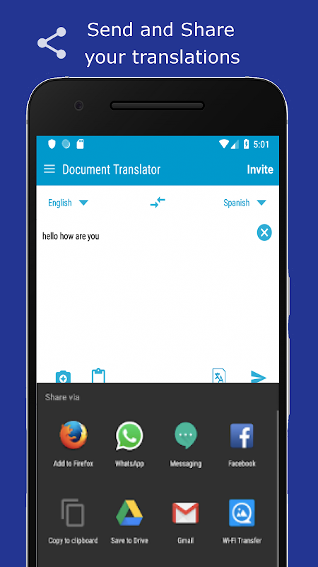 - Share your translated text to any social media or in the text.