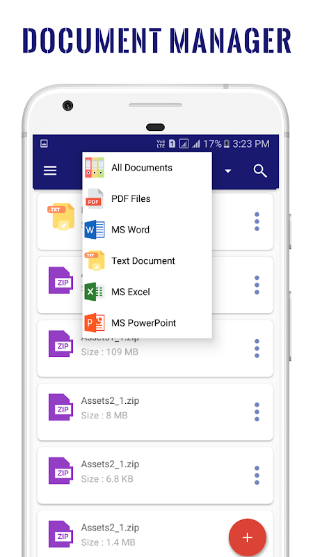 - All document files like docs reader, excel reader, Pdf File Reader, PowerPoint Viewer, word file opener, File Reader, , xlsx file reader, Pdf file, excel reader for android, ppt file Reader, Zip File Reader For Android, zip files opener, Pdf Reader, word file viewer, Docs Viewer, pptx viewer for android, PDF File Reader For Android Mobile, ppt file opener, document manager, viewer app, ms word Files, Pdf Viewer, excel file viewer, Word files manager, Ppt files manager, docs viewer app, pdf viewer & reader, xls files manager, ms excel files, word file reader, xls file viewer, ms powerpoint files, ppt viewer in this document manager app.