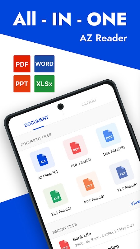 AZ ریڈر - ڈاکومنٹ ریڈر اور ایڈیٹر ایک آفس ورک ایپ ہے جو آپ کو اپنے فون پر دستاویزات کو A سے Z تک پڑھنے اور ان میں ترمیم کرنے کی اجازت دیتی ہے۔ AZ ریڈر میں ذہین ٹیکسٹ ریڈر آپ کو دستاویزات کو آسانی سے پڑھنے اور ان کا نظم کرنے کے ساتھ ساتھ PDF میں ترمیم اور اسکین کرنے میں مدد کرتا ہے۔ . AZ Office کے ساتھ، آپ آسانی سے مختلف فائل فارمیٹس جیسے doc، xls، pdf، excel، txt، ppt، docx، xlsx، اور pptx کو کھول اور دیکھ سکتے ہیں۔