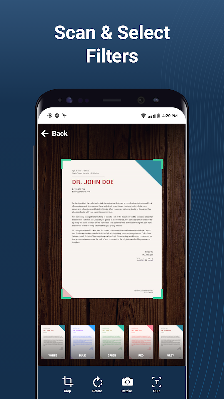 اپنے کیمرہ رول سے سکین شدہ تمام دستاویزات کو دوبارہ ڈیزائن کریں۔ موسم میں یہ ایک JPED یا PDF فارمیٹ کی تصویر ہے جسے آپ اب بھی دیکھ سکتے ہیں، تراش سکتے ہیں، گھما سکتے ہیں، دوبارہ ترتیب دے سکتے ہیں یا فلٹرز استعمال کر کے رنگوں کو ایڈجسٹ کر سکتے ہیں۔ دستاویز اسکینر یا پی ڈی ایف کنورٹر ایپ کے ساتھ اپنی تصویروں کو ڈیجیٹائز کریں۔
