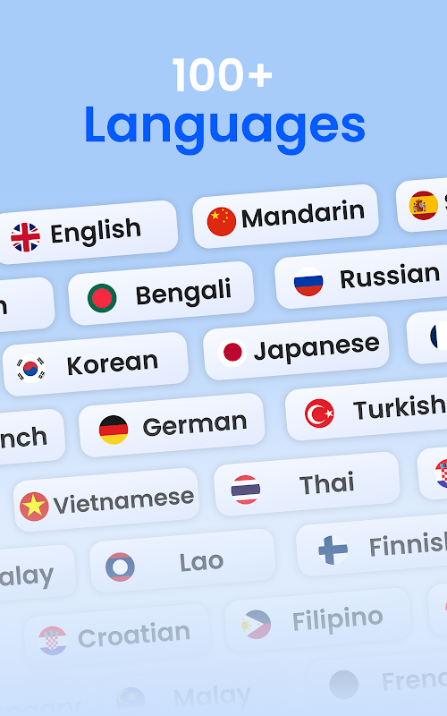 افریقی، البانی، امہاری، عربی، آرمینیائی، آذربائیجانی، باسکی، بیلاروسی، بنگالی، بوسنیائی، بلغاریائی، کاتالان، سیبوانو، چیچیوا، چینی (آسان)، چینی (روایتی)، کورسیکن، کروشین، چیک، ڈینش، ڈچ، انگریزی ایسپرانٹو، اسٹونین، فلپائنی، فنش، فرانسیسی، فریسی، گالیشین، جارجیائی، جرمن، یونانی، گجراتی، ہیتی کریول، ہاؤسا، ہوائی، عبرانی، ہندی، ہمونگ، ہنگری، آئس لینڈی، اِگبو، انڈونیشی، آئرش، اطالوی، جاپانی، جاوانی ، کنڑ، قازق، خمیر، کورین، کردش (کرمانجی)، کرغیز، لاؤ، لاطینی، لیٹوین، لتھوانیائی، لکسمبرگش، مقدونیائی، ملاگاسی، مالائی، ملیالم، مالٹی، ماوری، مراٹھی، منگول، میانمار (برمی)، نیپالی، نارویجن ، پشتو، فارسی، پولش، پرتگالی، پنجابی، رومانیہ، روسی، سامون، اسکاٹس گیلک، سربیائی، سیسوتھو، شونا، سندھی، سنہالا، سلوواک، سلووینیائی، صومالی، ہسپانوی، سنڈانی، سواحلی، سویڈش، تاجک، تامل، تیلگو، تھائی، ترکی، یوکرینی، اردو، ازبک، ویتنامی، ویلش، ژوسا، یدش، یوروبا، زولو