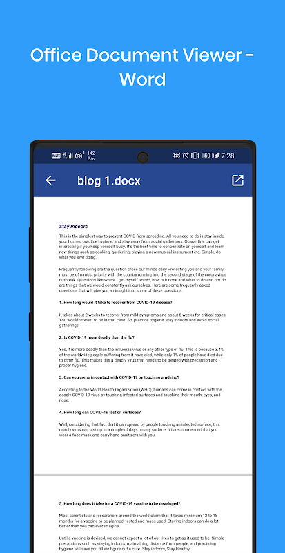 Looking for document viewer for your files, it is now easy to view files using our versatile document viewer. The app is light on storage space and It's a very friendly app easy to used.