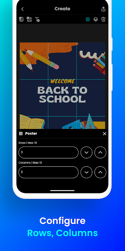 - سائز موڈ - اپنے پوسٹر کے لیے درست چوڑائی اور اونچائی سیٹ کریں۔