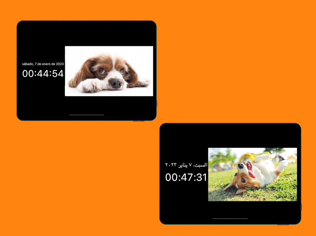 یہ ایپ ڈیوائس کی ٹائم سیٹنگز کا استعمال کرتے ہوئے وقت دکھاتی ہے۔ اس کے علاوہ، کتے کی تصویر ہر 60 سیکنڈ میں خود بخود بدل جاتی ہے۔