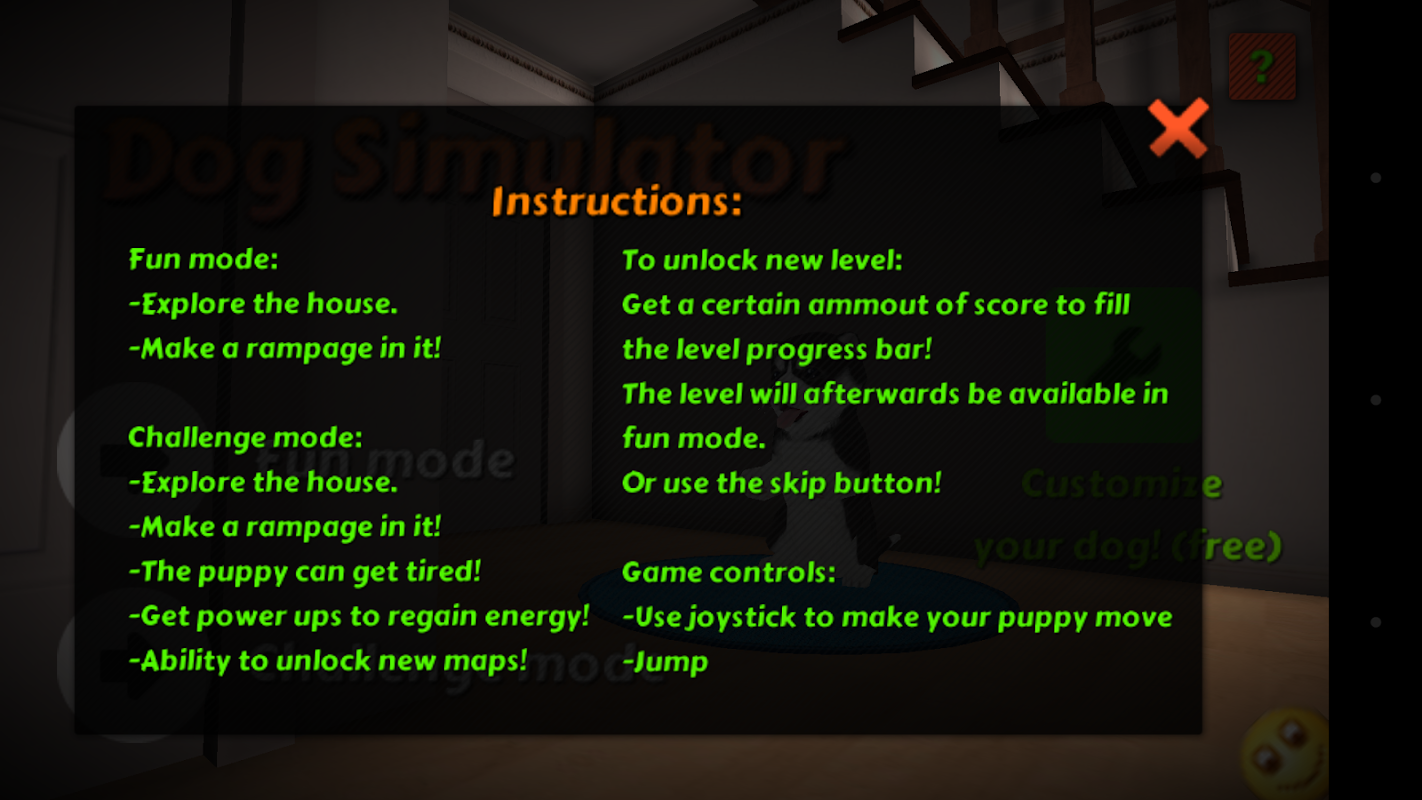 The most beautiful and realistic Dog Simulator available on Google Play! Play as a real dog inside a cool apartment and get ready for some real adventures. Knock off stuff, destroy whatever you like and cause the massive damage.