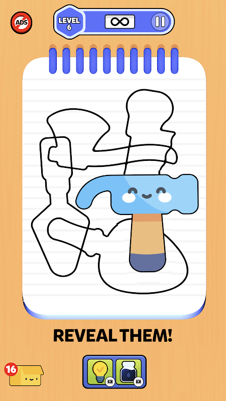 نوٹ بک پر ڈوڈل چھپی ہوئی اشیاء کو ننگا کریں۔ اشیاء کو بھرنے اور ظاہر کرنے کے لیے تھپتھپائیں۔