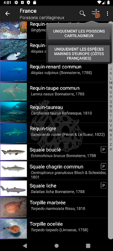 فرانس اور بیرون ملک مقیم پانی کے اندر موجود پرجاتیوں کے لئے روشن موبائل گائیڈ۔