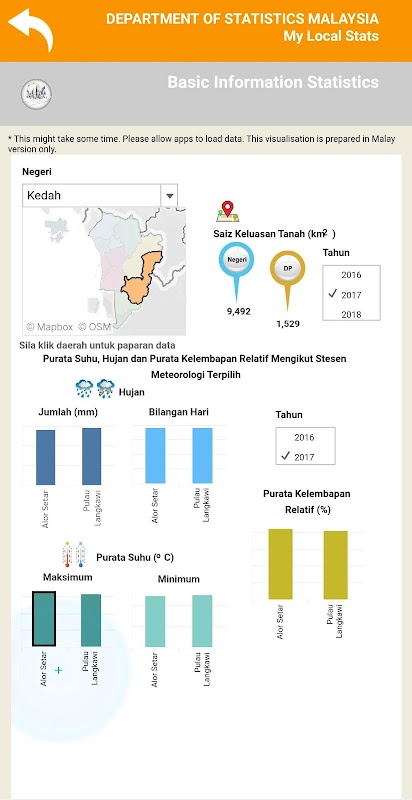 پہلی بار ، DOSM ضلعی سطح پر انفوگرافک شکل میں اعدادوشمار پیش کرتا ہے جسے معاشرے کے تمام سطحوں سے سمجھنا آسان ہے۔ یہ معلومات موبائل ایپلیکیشن انٹرایکٹو سسٹم کے ذریعہ متعارف کروائی گئی ہیں جسے مائی لوکل اسٹٹس کے نام سے جانا جاتا ہے۔ مائی لوکل کے اعدادوشمار صارفین کو مقامی ترقی کی منصوبہ بندی کے لئے ضلعی اور مقامی سطح تک اعداد و شمار تک رسائی حاصل کرنے میں معاون ثابت کریں گے۔