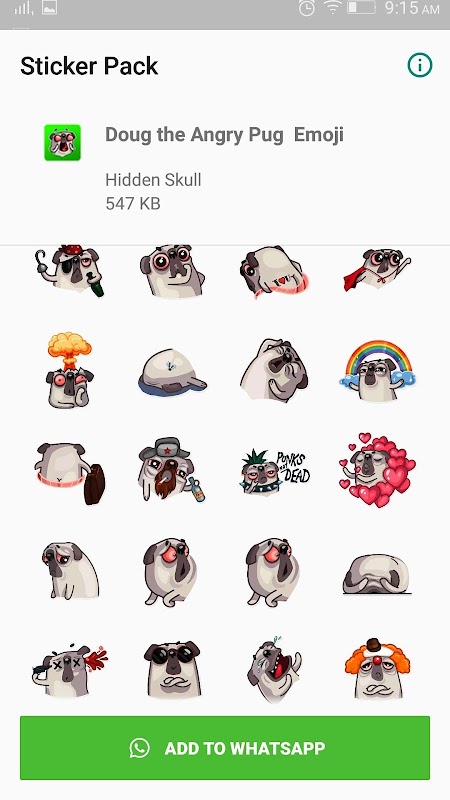 Download Sticker app to get Doug the Angry Pug stickers for (WAStickers), to send to your friends and family.
