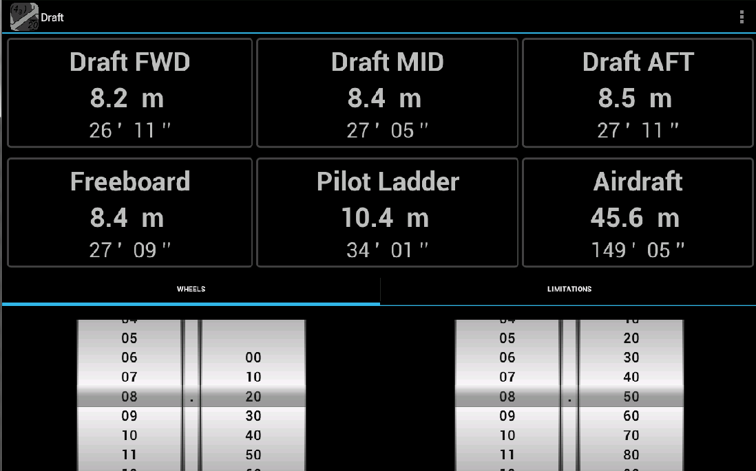 Draft calculator serves to convert ships draft from inches to metric system . App calculates freeboard, draft amidship and airdraft.
