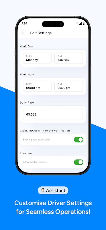 ڈرائیور کے کام کے دنوں اور اوقات کو ٹریک کرنے کے لیے مالک کے لیے ایپ۔