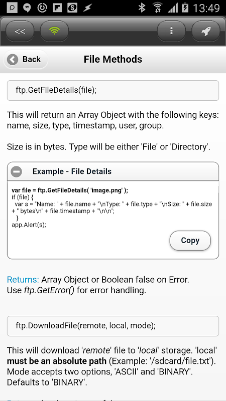 FTP client plugin for DroidScript