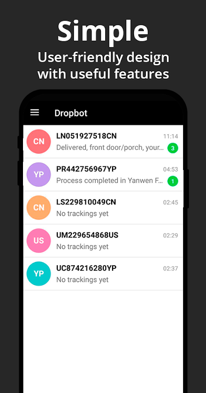 Dropbot is a smart and simple package tracker app to track all of your packages and shipments.