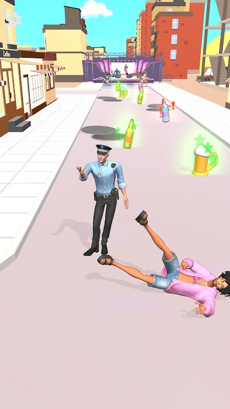 Drink as much as you want but be careful, the more you drink the more you walk ridiculously. Oh and watch for cops and manholes along your way, you don't wanna end up covered in poo or in jail now do you? Stay away from healthy stuff and be the center of the party! Let's go!
