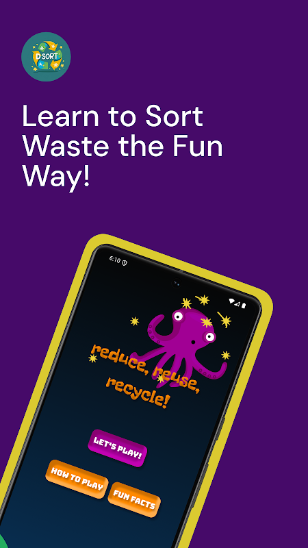 DSort ایک تعلیمی اور تفریحی کھیل ہے جو بچوں کو ری سائیکلنگ اور فضلہ چھانٹنے کی اہمیت سکھانے کے لیے ڈیزائن کیا گیا ہے۔ بچے مختلف ماحول جیسے گھر، اسکول اور پارک میں انٹرایکٹو ویسٹ سورٹنگ اور ویسٹ پزل گیمز کھیل سکتے ہیں، کچرے کو درست طریقے سے چھانٹنے کے لیے پوائنٹس حاصل کر سکتے ہیں اور غلطیوں کی وجہ سے جانیں گنوا سکتے ہیں۔ راستے میں، کھلاڑی تفریحی پہیلیاں حل کر سکتے ہیں، ماحول دوست حقائق دریافت کر سکتے ہیں، اور ہر گیم کے اختتام پر حاصل کیے گئے بیجز کا اشتراک کر سکتے ہیں۔ DSort سیکھنے اور کھیل کو یکجا کرتا ہے، 3Rs کے بارے میں آگاہی کو فروغ دیتے ہوئے بچوں کے لیے پائیداری کو دلفریب اور تفریحی بناتا ہے: Reduce, Reuse, Recycle۔ انٹرایکٹو چیلنجز، پوائنٹس، بیجز اور تفریحی حقائق کے ساتھ، DSort بچوں کو تفریح کے دوران ماحول دوست عادات کو اپنانے کی ترغیب دیتا ہے۔