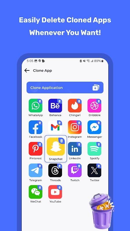 ڈوئل اسپیس کے ساتھ آسانی کے ساتھ ڈوئل اکاؤنٹس، ایک سے زیادہ اکاؤنٹس، 2 اکاؤنٹس، اور متوازی جگہوں کو منظم کرنے کی طاقت کو غیر مقفل کریں! چاہے آپ کو ڈوئل واٹس ایپ، ڈوئل فیس بک، ڈوئل انسٹاگرام، یا ڈوئل میسنجر کی ضرورت ہو، یہ ایپ ایک ہی ڈیوائس پر دو اکاؤنٹس چلانے کے لیے آپ کا حتمی حل ہے۔ ذاتی اکاؤنٹس اور ورک اکاؤنٹس کو الگ کرنے کے لیے بہترین، ڈوئل اسپیس آپ کو ایپس کو کلون کرنے اور متعدد سوشل میڈیا اکاؤنٹس کو آسانی سے منظم کرنے دیتا ہے۔