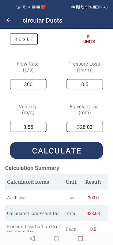 اس ورژن میں ایپ مستطیل ڈکٹ ، فلیٹ اوول ڈکٹ اور سرکلر ڈکٹ سائز کا حساب لگارہی ہے۔