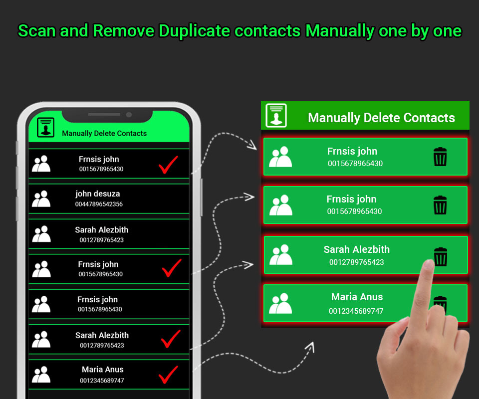 متعدد جعلی رابطوں کو صاف اور حذف کرنے کے لئے ڈپلیکیٹ رابطہ کلینر۔