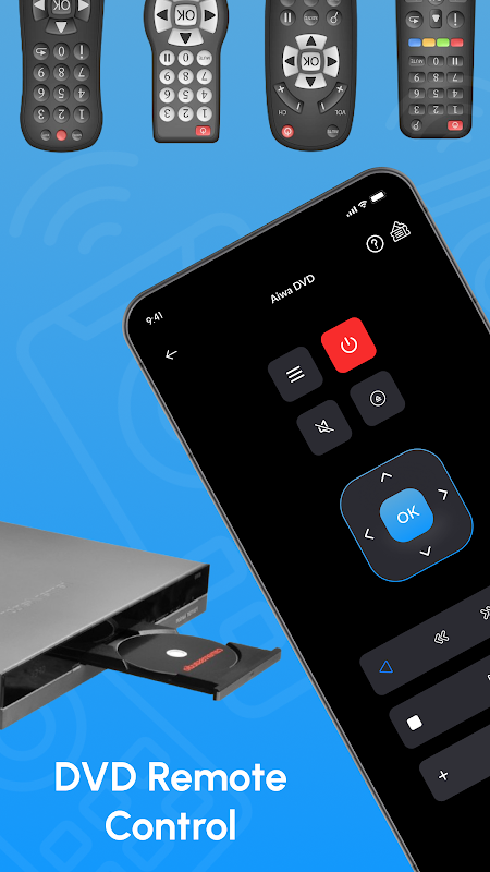 ڈی وی ڈی ریموٹ کنٹرول ان تمام فنکشنلٹیز کے لیے جو آپ کا فزیکل ریموٹ فراہم کرتا ہے اور دیگر جدید فنکشنز کے ساتھ ساتھ دنیا بھر میں موجود تقریباً تمام برانڈز اور ماڈلز کو سپورٹ کرتا ہے۔