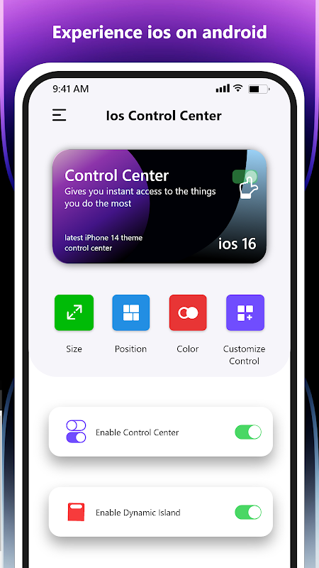 آئی او ایس کنٹرول لانچر ایپ اینڈرائیڈ انٹرفیس سے آئی او ایس، فون انٹرفیس میں جانے کے لیے بہترین ایپلی کیشن ہے۔ فون لانچر کے ساتھ، آپ اپنے android فون پر iOS لانچر کا سامنا کر سکتے ہیں۔ ios کنٹرولر ایک android لانچر کو iOS لانچر میں منتقل کرنے کے لیے ایک ایپلی کیشن ہے۔ یہ ایپ ایک متحرک جزیرہ بھی فراہم کرتی ہے، یہ ڈائنامک ویو فنکشن آپ کے کیمرے کو مزید خوبصورت بناتا ہے۔ نوٹیفکیشن دیکھنے اور متحرک جزیرے کے نظارے پر کارروائیاں کرنا آسان ہے۔ ڈائنامک اسپاٹ کے ساتھ، آپ یقینی طور پر اپنے اینڈرائیڈ فون پر آئی او ایس ڈائنامک آئی لینڈ کی خصوصیات حاصل کر سکتے ہیں۔ اس آئی او ایس لانچر فون کی اصل ایپ کا استعمال کریں اور اپنے فون آئی او ایس کو منتقل کرنے کے لیے صرف ایک کلک کریں۔