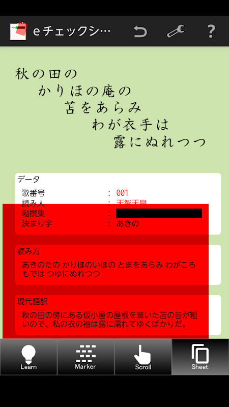 And try to remember the Hyakunin in check sheet! !Character disappears in the red sheetIs memorization app.