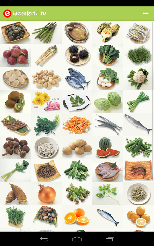 اجزا تلاش کرنے کے مختلف طریقے موجود ہیں ، جیسے ماہانہ اور موسمی نیز حروف تہجیی ترتیب اور مفت الفاظ میں۔ بنیادی معلومات جیسے موسمی سیزن ، اہم غذائی اجزاء ، اجزاء کی خصوصیات ، اصل اور ترسیل کے علاوہ ، یہ روز مرہ کی خریداری اور مینو بنانے کے لئے مفید معلومات سے بھرا ہوا ہے ، جیسے تازہ اجزاء کو کس طرح منتخب کرنا ہے ، انہیں کیسے تیار کیا جاسکتا ہے ، اور کھانا پکانے کے طریقے۔ ہے.