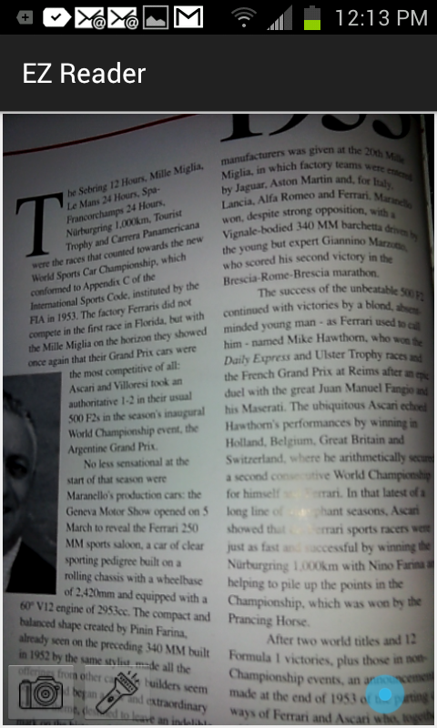 This app was developed to read small text in low light situations, and when you have forgotten your reading glasses. You can zoom in on text, and use the flashlight to illuminate the text that you are reading. It also helps in a low light area such as a restaurant, or an airplane when the area is dark. Use the flashlight to illuminate. If the camera resolution on your phone does not support the zoom, you can take a picture of the text and zoom in with your fingers on the image. Take a picture and save the image, then on the next screen zoom in with your fingers to read the illuminated text.