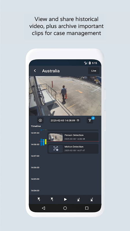 - ریکارڈ شدہ ویڈیو دیکھیں، ٹائم لائن کے ساتھ حرکات اور دیگر واقعات کی نشاندہی کریں۔
