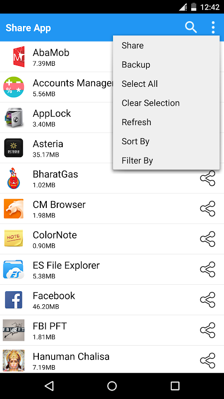 Great Application to Share and Manage your Applications installed on your Device. You can easily share applications with your Friends and families via Bluetooth, Email, SMS, WhatsApp & Google Plus.