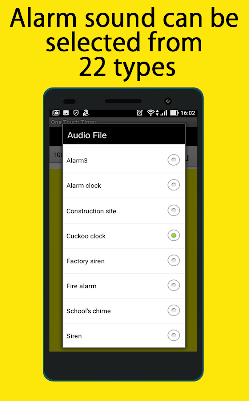 -Alarm sound can be selected from 22 types.