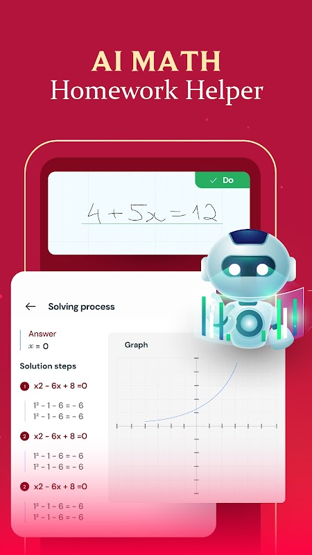 AI Math homework helper app with photo math scan & get math answers step by step