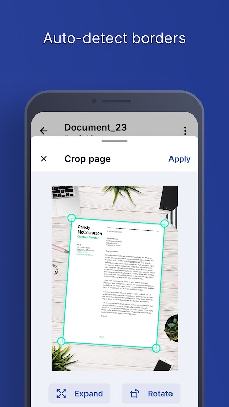 * ذہین دستاویز کی کٹائی: کیپچر شدہ تصویر سے دستاویز کی سرحد اور تراشی ہوئی دستاویز کا خود بخود پتہ لگانا