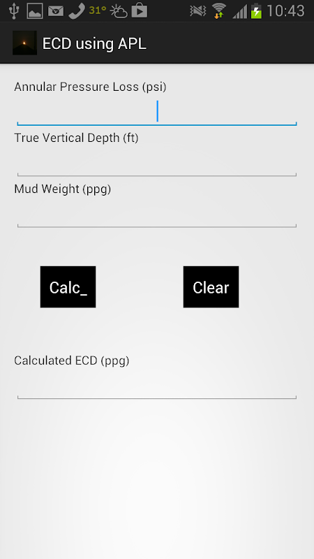 Another ECD calculation although this one is calculated using Annular Pressure Loss as one of the input values.