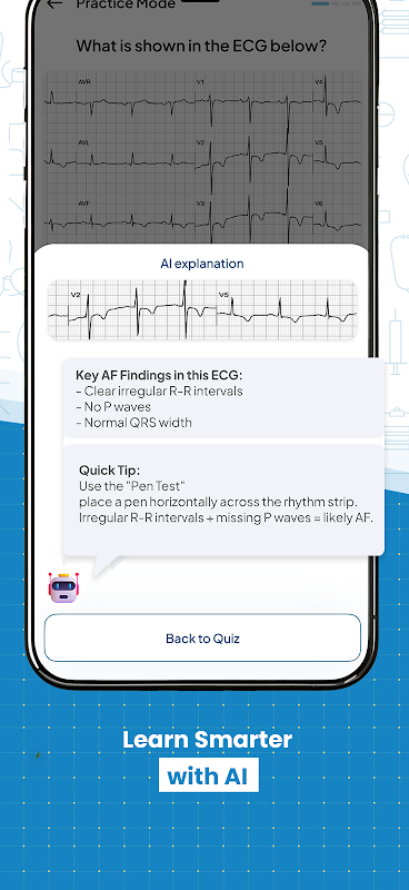 - AI سے چلنے والی وضاحتیں: ہر ECG کی وضاحت کے لیے ہمارے AI سے فوری، تفصیلی تاثرات حاصل کریں، یہ سمجھنے میں آپ کی مدد کریں کہ آپ نے کیا کھویا اور کیوں۔