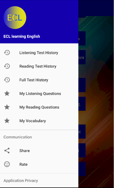 > ایپ کو ایک انکولی ای سی ایل ٹیسٹ کے ذریعے تقویت یافتہ ہے۔ اس امتحان پر ، سوال کی دشواری کو صارف ای سی ایل انگریزی کی سطح کے مطابق تبدیل کردیا گیا ہے۔