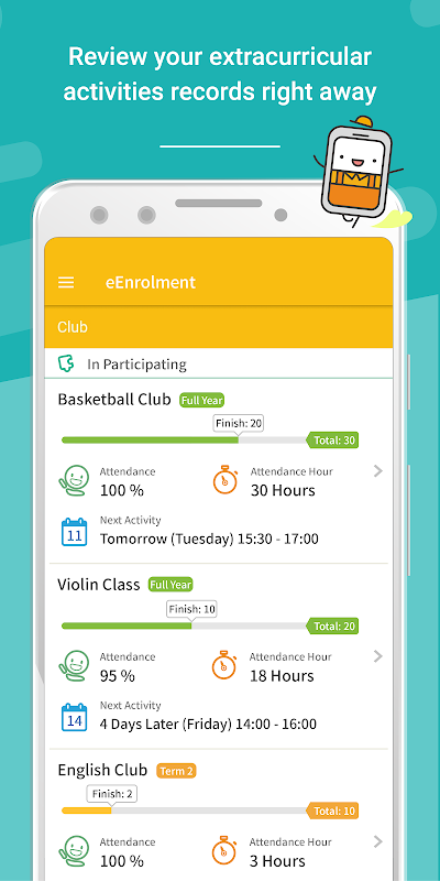 - eEnrolment: اپنے تمام غیر نصابی سرگرمیوں کے ریکارڈ کا جائزہ لیں۔