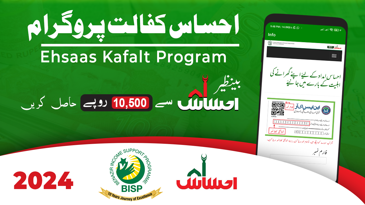 موجودہ وزیراعظم پاکستان کا احساس پروگرام 10500، جسے BISP پروگرام بھی کہا جاتا ہے، 2024 میں آن لائن رجسٹریشن کے لیے کھلا ہے، اب نئے والے رجسٹریشن کے عمل کے بعد ماہانہ 10500 تک حاصل کر سکیں گے۔ لہذا یہ ایپ آپ کو پروگرام میں شامل ہونے میں مدد دے گی۔
