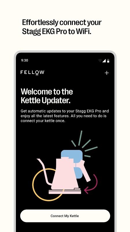 اپنی Stagg EKG پرو کیتلی سے زیادہ سے زیادہ فائدہ اٹھانے کے لیے EKG اپڈیٹر استعمال کریں۔ یہ ایپ آپ کی کیتلی کو آپ کے گھر کے وائی فائی سے منسلک کر کے اسے اپ ٹو ڈیٹ رکھتی ہے۔ بس ایک بار جڑیں اور ہمارے تمام تازہ ترین فرم ویئر اور پکنے والی خصوصیات کے ساتھ خودکار اپ ڈیٹس سے لطف اندوز ہوں۔