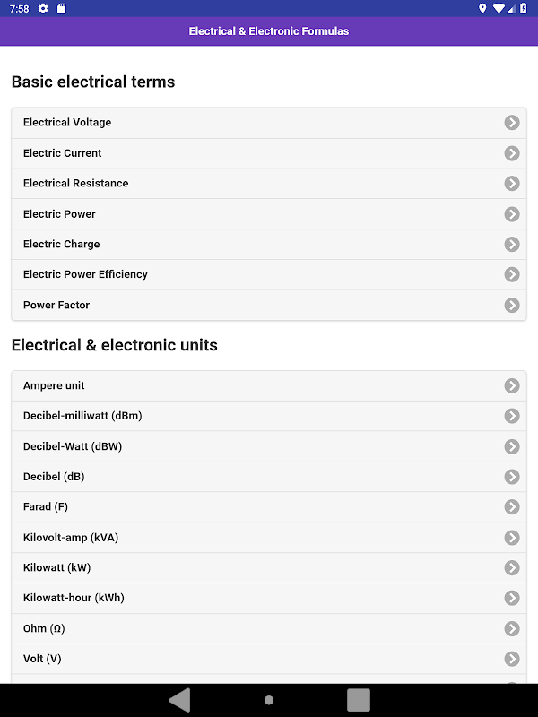 تمام درجات کے طلباء کے لیے الیکٹریکل اور الیکٹرانک فارمولوں کا مجموعہ۔ اس ایپ کے تمام فارمولے بغیر انٹرنیٹ کے لوڈ ہوتے ہیں۔ لہذا آپ کو اس ایپ کو استعمال کرنے کے لیے انٹرنیٹ کی ضرورت نہیں ہے۔ آپ اہم الیکٹریکل اور الیکٹرانک فارمولے اور شرائط سیکھ سکتے ہیں۔ آپ اس ایپ سے فارمولے سیکھ سکیں گے جیسے: