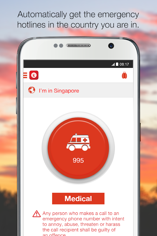Emergency Hotlines allows users to quickly place an emergency call (Ambulance, Police, and Fire) in any country they are in the world.