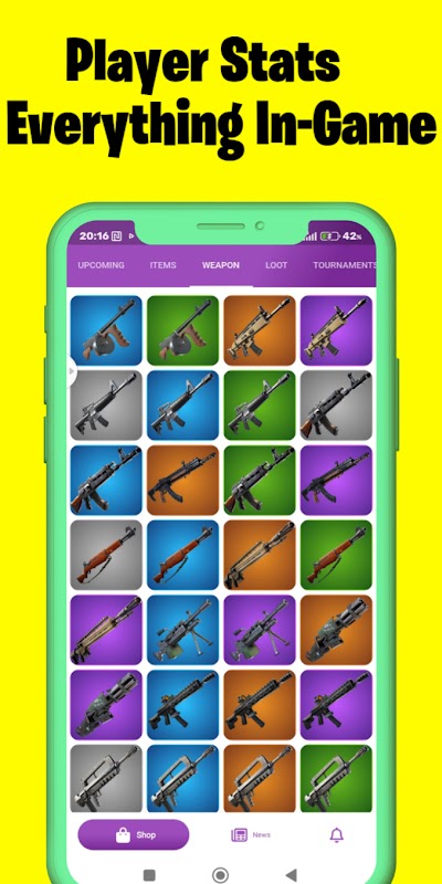 اسٹنگر ایس ایم جی، سائیڈ آرم پسٹل، سائیڈ ویز منی گن، راکٹ لانچر آپ کے حریف کو درمیانی رینج کے قریب لے جانے کے لیے بہترین ہتھیار ہیں۔ MK-Seven ایک حملہ آور ہتھیار ہے، جو گیم میں پی بی جی اور آئی موٹس کے لیے جذباتی ناظرین کے لیے ہے۔ شاٹ گن کے دو اختیارات میں سے ایک آٹو شاٹ گن ہے۔ جب تک کہ ہدف میں مکمل ڈھالیں نہ ہوں، ہنٹر بولٹ ایکشن ایک بھاری سنائپر ہتھیار ہے جو فوری طور پر مخالف کو مار سکتا ہے۔ گیم اس طرح کے مختلف ہتھیاروں کے ساتھ کھلاڑی کو خوشی کے ناقابل یقین لمحات فراہم کرتا ہے۔