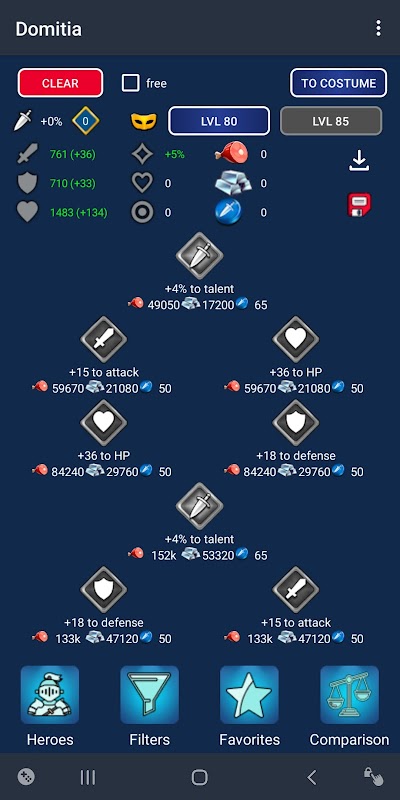 - ہر ہیرو کے لئے مکمل معلومات دی جاتی ہیں: خصوصیات ، صلاحیتیں ، نشان کیلکولیٹر ، خصوصیات اور استعمال کے اشارے tips