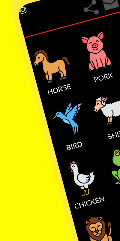الفاظ کا سیکشن۔ یہ حصہ بچوں کو مختلف عنوانات سے زیادہ سے زیادہ الفاظ سیکھنے اور ان پر عمل کرنے میں مدد کرنے کے لیے بنایا گیا ہے۔ مثال کے طور پر، وہ جانوروں کے نام ان کی آوازوں، نمبروں اور رنگوں کے ساتھ ان کے تلفظ اور مختصر جملوں میں ان کے استعمال کے ساتھ تلاش کریں گے۔ ابتدائی افراد کو نئے الفاظ کا تلفظ سکھایا جائے گا اور مقامی بولنے والوں کی طرح آواز دی جائے گی۔