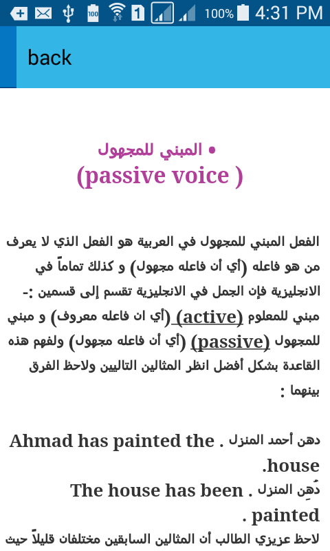 دوسرا سیکشن ، نیٹ کے بغیر انگریزی گرائمر ، نیٹ کے بغیر عربی وضاحت