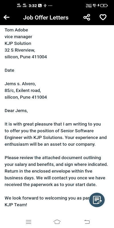 Job Offer Letters- Information about specific details regarding salary.