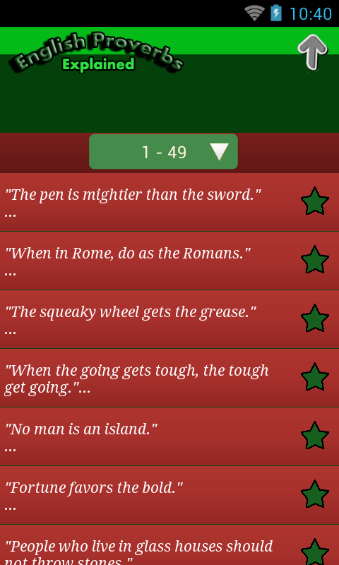 Adults and kids alike can learn from these proverbs, and students of English language can also benefit from this app by reading, memorizing and learning by heart these proverbs and thus use them in speaking or in their writing.
