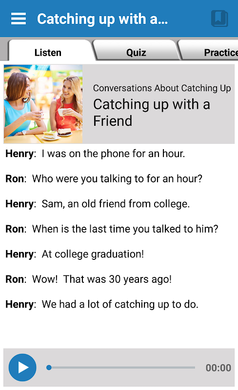 انگریزی سیکھنے کا بہترین طریقہ بات چیت میں انگریزی بولنے کی مشق کرنا ہے۔ انگریزی سیکھنے کے لئے اس ایپ کا استعمال کریں۔