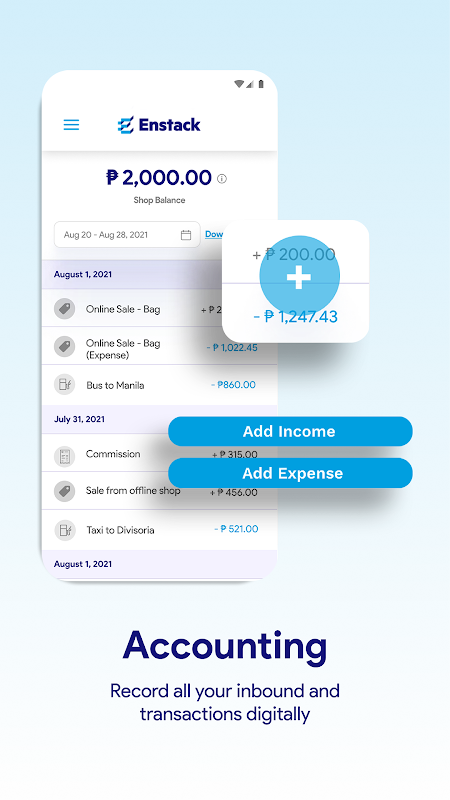 Moving SME operations management and financial records on the Enstack app allows merchants to manage and monitor daily financial transactions, income, expenses, store performance, and business profits.