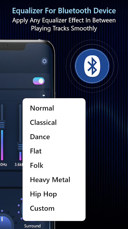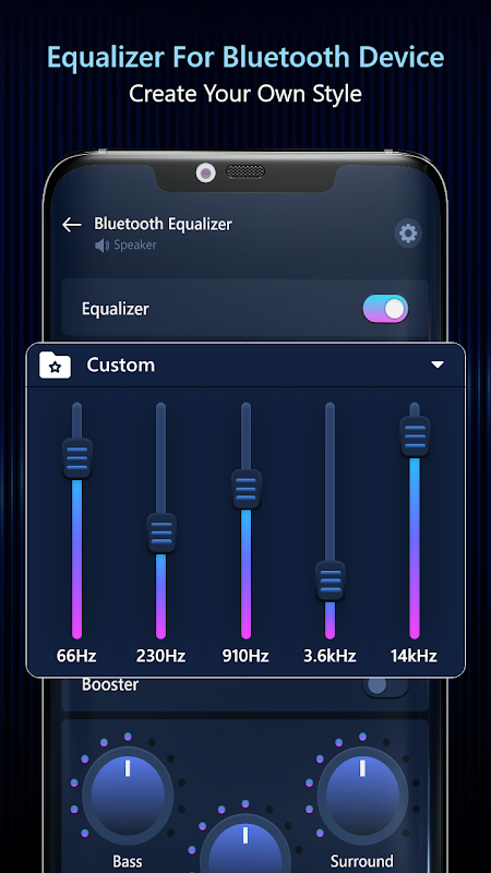 اس ایپ میں، آپ کو باس بوسٹر، لاؤڈنس کنٹرولر، سراؤنڈ اور ایکویلائزر ملے گا جسے آپ بلوٹوتھ ہیڈ فونز اور اسپیکرز پر بہتر تجربہ حاصل کرنے کے لیے موسیقی کو اپنی مرضی کے مطابق بنانے کے لیے استعمال کر سکتے ہیں۔